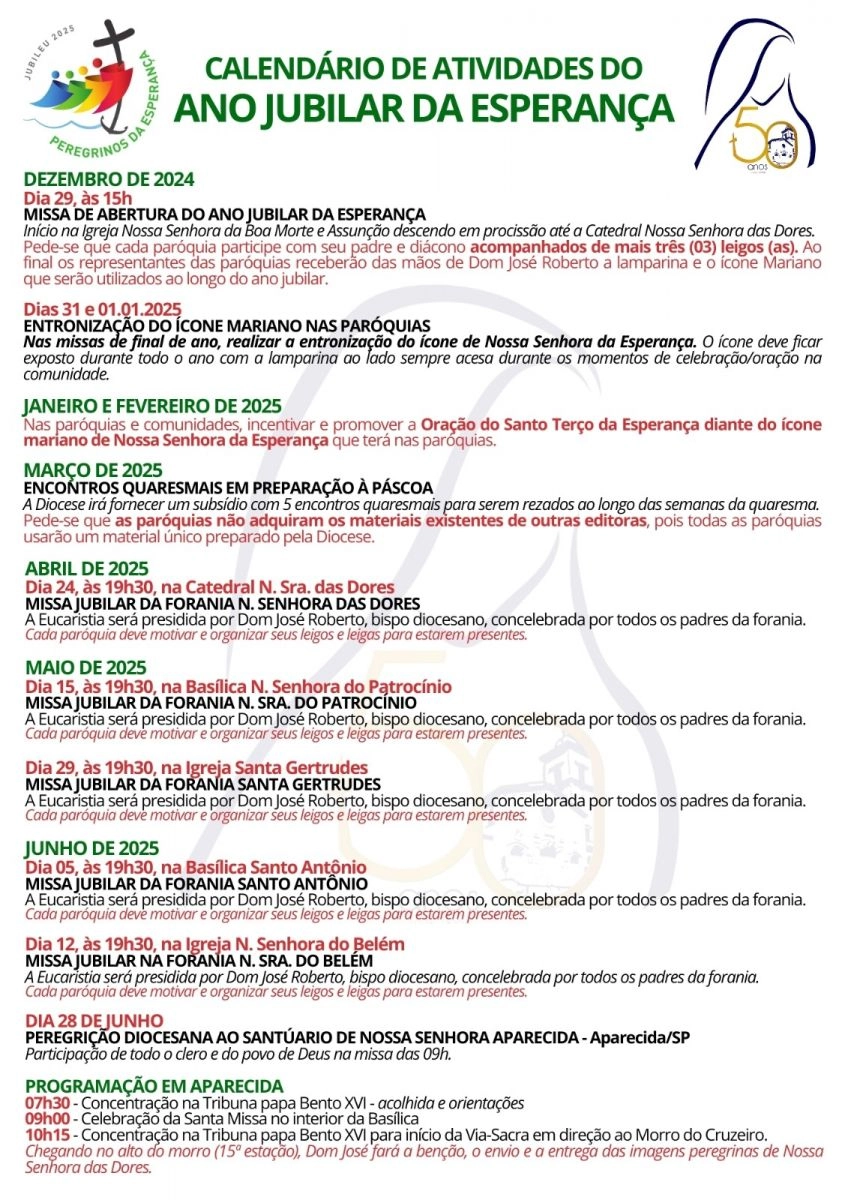 Calendário de Atividades do Ano Jubilar da Esperença - Diocesano